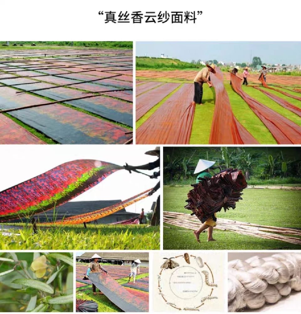 香云纱的染整工艺流程多达三十道,俗称“三洗九煮十八晒"。